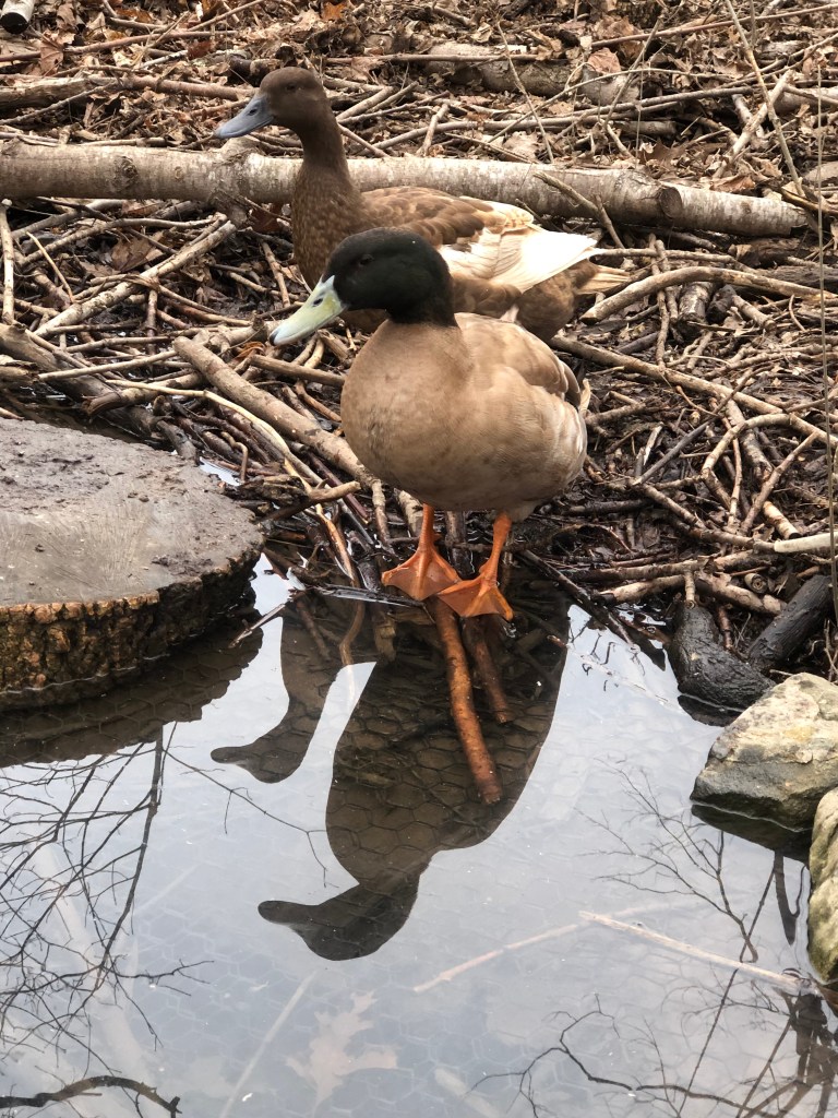 Ducks love water, but Odin’s duck pond has been frozen for months now. However, within the chicken run is an old well where water flows even on the coldest days. The wind will blow, and temps remain in the single digits, yet this dug well from generations ago offers water at a balmy 45 degrees, steaming in this frigid environment. Not just comforting for the ducks, the chickens will stand ankle deep in the water, warming their feet.